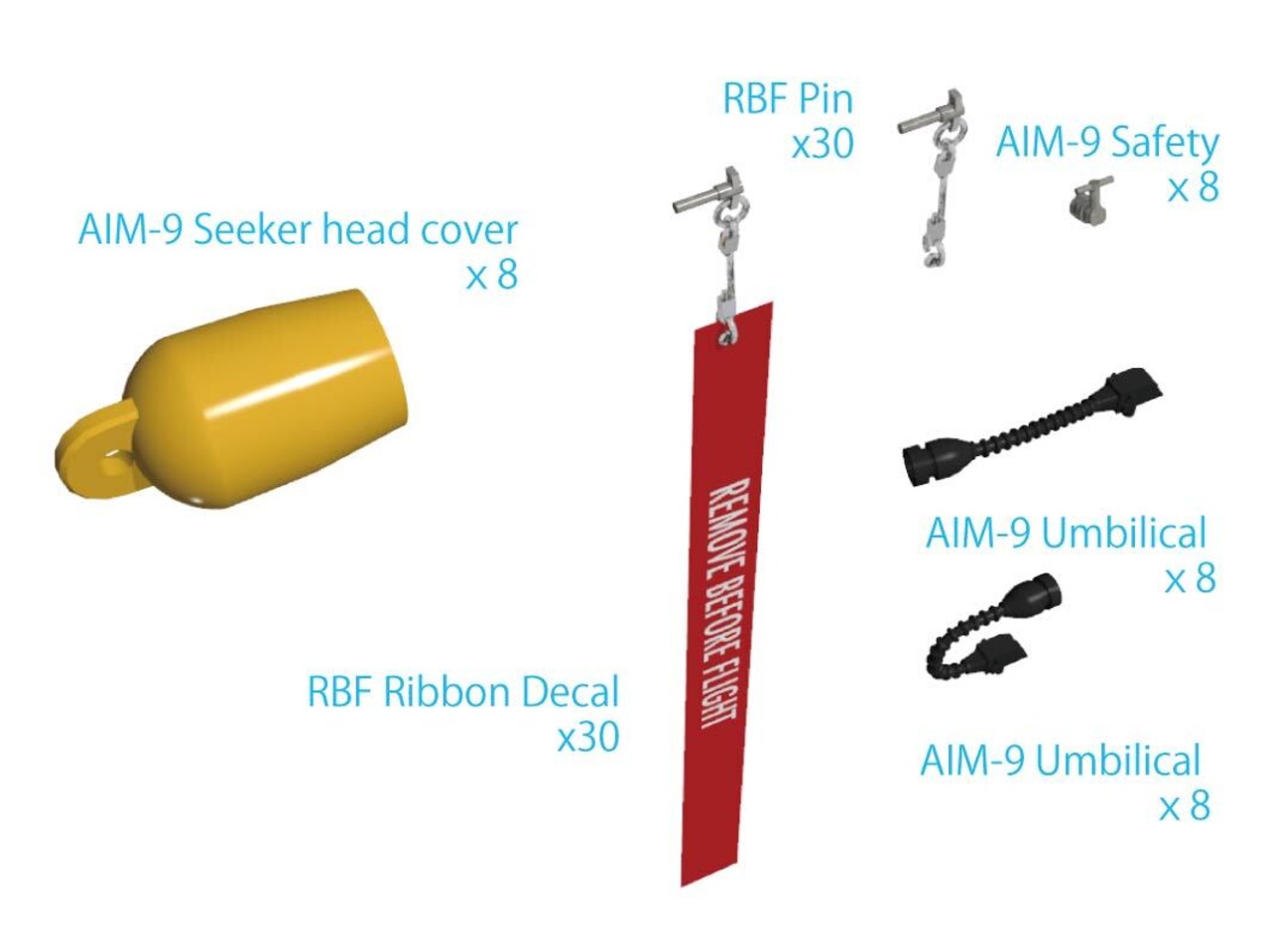AIM-9用のシーカー保護キャップ、アンビリカルケーブル、セーフティピンが付属