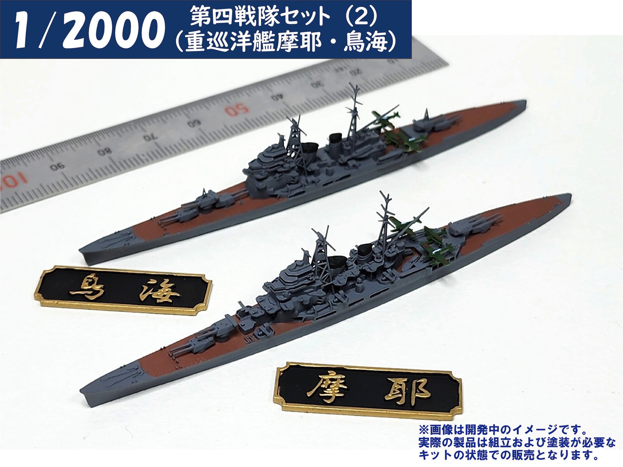 高雄型重巡洋艦で編成された第四戦隊のうち、三番艦摩耶および四番艦鳥海の1/2000スケールモデルのセットです。