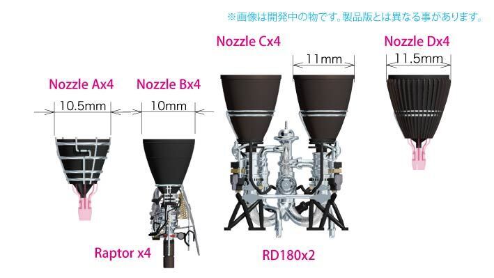 バーニアSセットはRaptor x4基、RD-180 x2基 ノズルは各2タイプ4個ずつ計16個付属