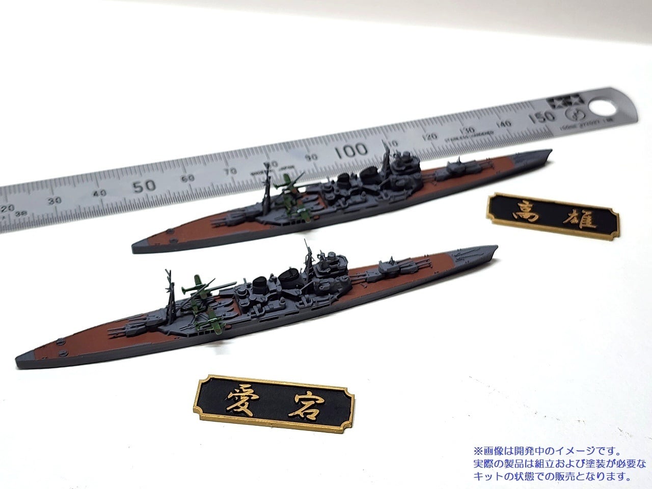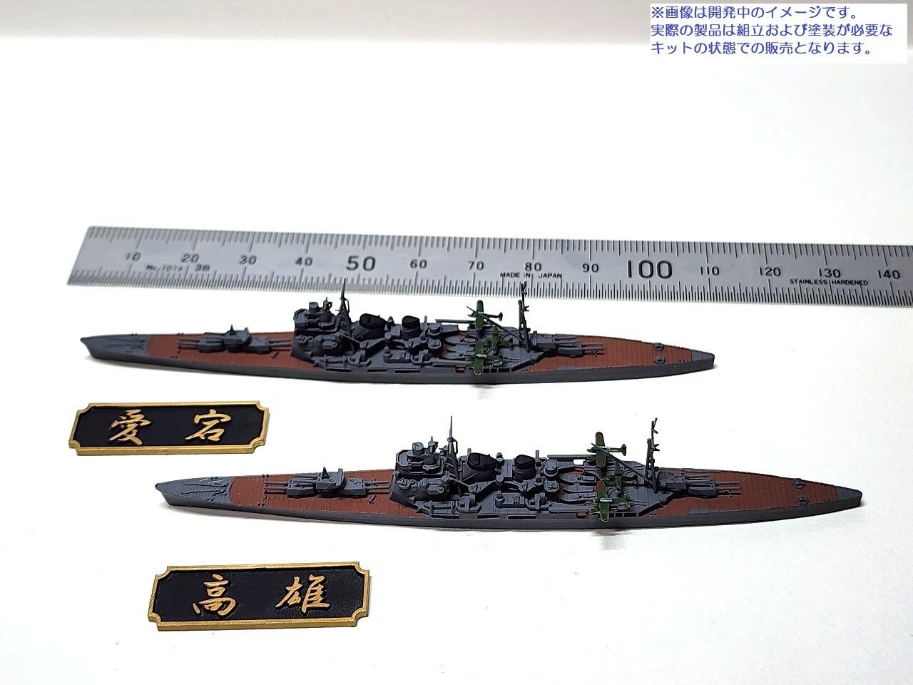 高雄型重巡洋艦で編成された第四戦隊のうち、一番艦高雄および二番艦愛宕の1/2000スケールモデルのセットです。