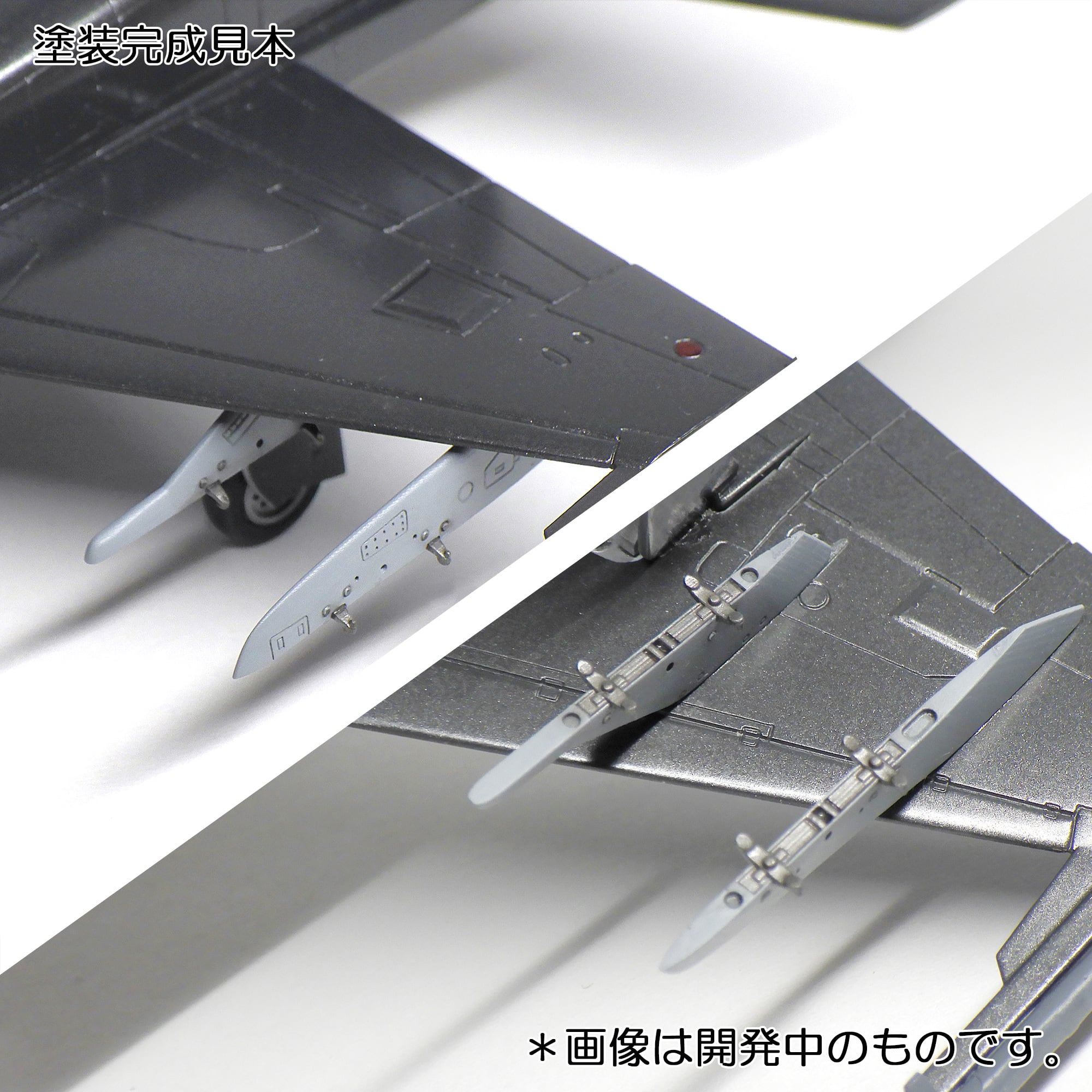 実機に搭載されてる一回り大きいタンクと精密なパイロンの他、インテイクカバー、アレスティングフック部のパーツがついていろんなシチュエーションを楽しむことができます。