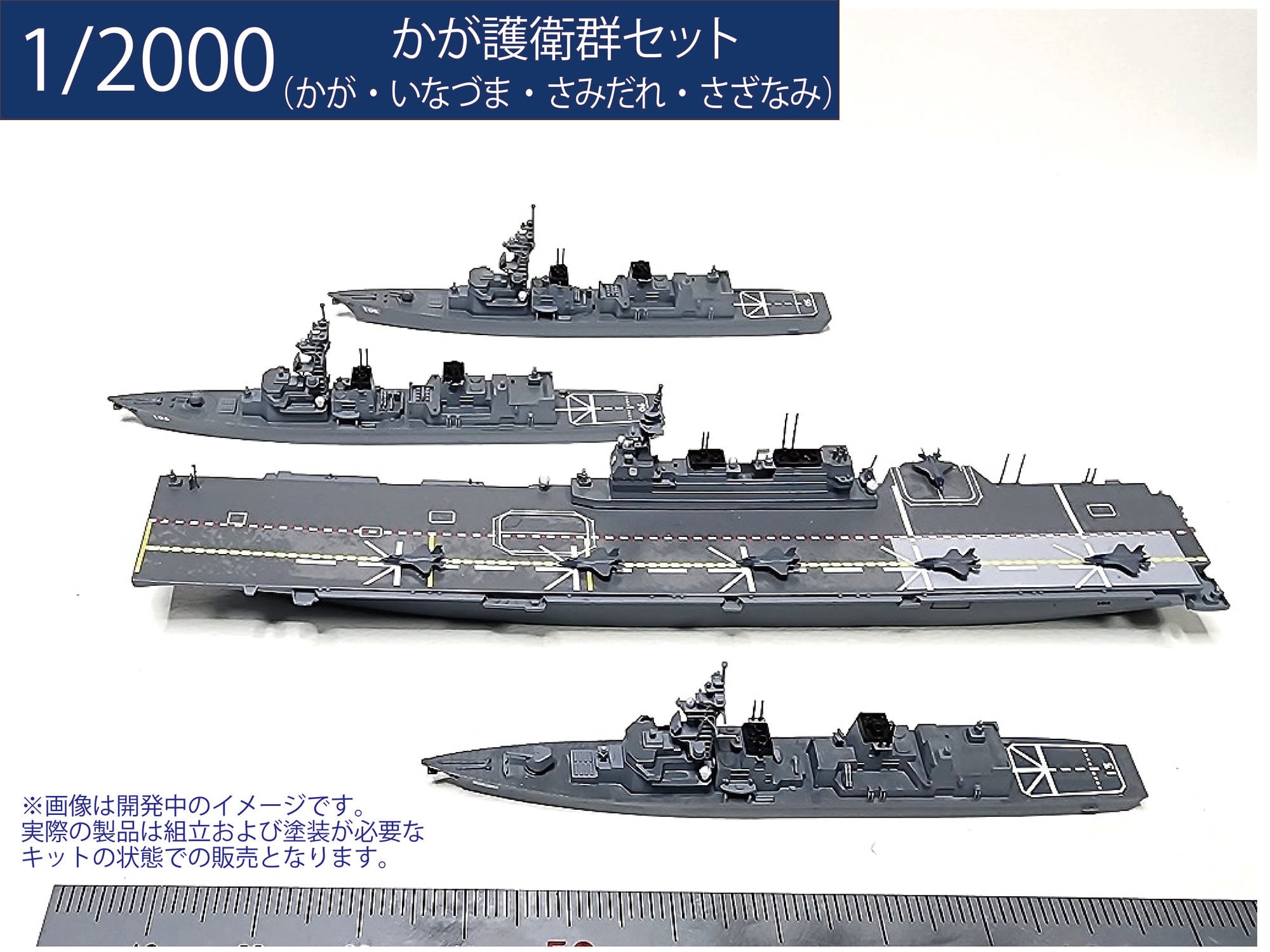 海上自衛隊の護衛艦かが、いなづま、さみだれ、さざなみで構成された第二護衛群のセットです。