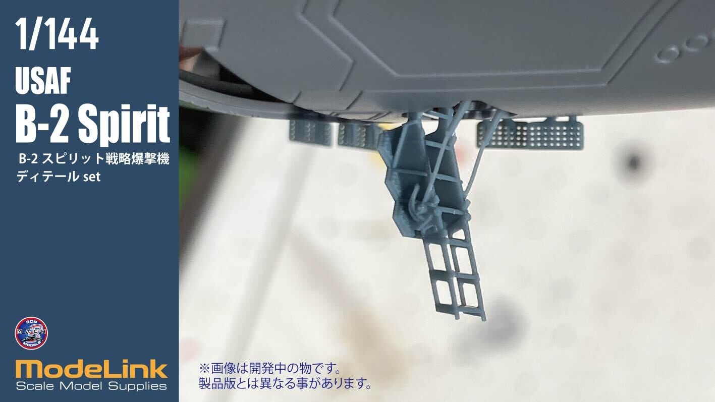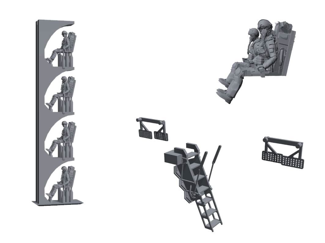 パイロットフィギュアx4体、ウェポンベイのウィンドデフレクターx2、機内収納式のタラップをセットしました。